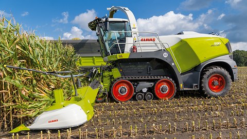 - Con la più potente JAGUAR 990 TERRA TRAC, una ORBIS 900 a 12 file e cingolatura stretta è l’unica in questa classe di potenza che può circolare con una larghezza di trasporto di 3 m.